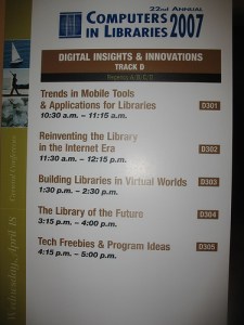 Life has been in overdrive lately and I have good intentions of going back to edit the post with my CIL slides (maybe tomorrow is what I keep saying, so don’t hold your breath). My big accomplishment for the day is that it took me less than a month to find time to download and upload my CIL photos and organize them in a set on my flickr account. I took a whole lot less pictures than I normally do at conferences — I was too busy learning and having fun (which is a good thing). Thanks for the memories everyone, I had a blast.