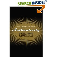 Back in March, at PLA, I remember Karen Hyman talking about authenticity in the lastest issue of Time magazine. It intrigued me enough to cause me to look into the issue of Time and then also interlibrary loan the book, Authenticity: What Consumers Really Want by James H. Gilmore and B. Joseph Pine II.