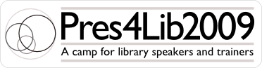 Pres4Lib2009 is a presentation camp and will be conducted as an unconference. This will be a great opportunity for presenters and trainers (and those interested in presenting and training) in the library community to network and share their tips, technologies, best practices, and experiences.Highlights of the day will include two rounds of lightning talks, three breakout sessions, and a chance to witness Battle Decks in action.